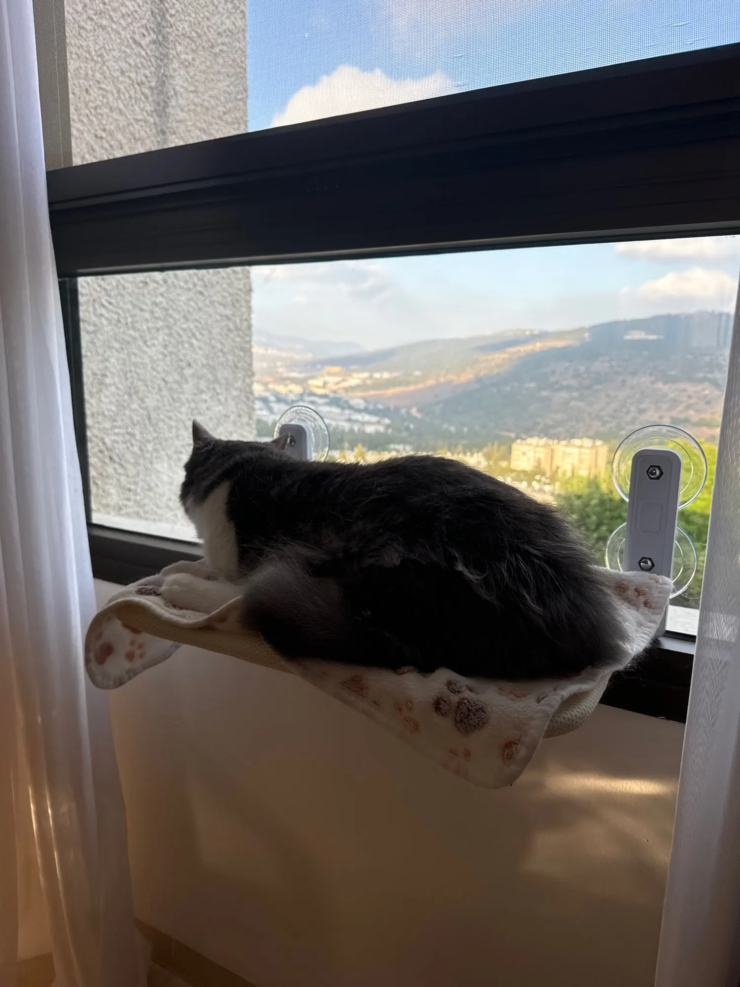 Mon chat a apprécié immédiatement et s'est reposé dessus. Ça semble stable, ce qui est génial. Il était vraiment facile d'assembler le hamac!